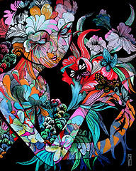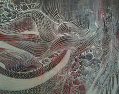 I wasnt immediately drawn to this one when i first looked at it, but then i looked again and when you look up close its really beautiful, especially the flowers, and see those hands, down there in the bottom right hand corner, i think they might be my healing massage hands!